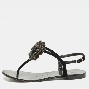 Giuseppe Zanotti Black Patent Leather Crystal Embellished Harmony G Sandals Size 38