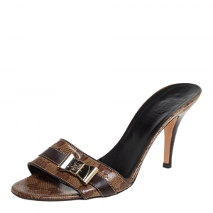 Gucci Gold/Brown GG Crystal Canvas and Leather Interlocking G Buckle Slide Sandals Size 38