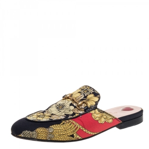 Gucci Multicolor Floral Canvas and Leather Bamboo Horsebit Slide Sandals Size 38