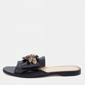 Gucci Cream/Black Leather Web Bow Embellished Jane Slide Mules Size 36
