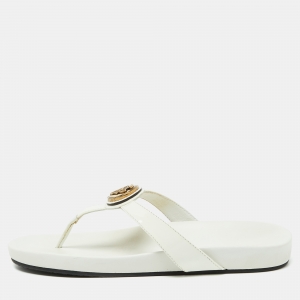 Gucci White Leather Zumi Flat Sandals Size 39.5