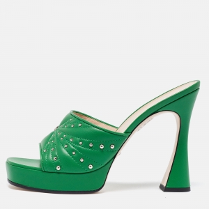 Gucci Green Embossed Snakeskin Peep Toe Mules Size 36