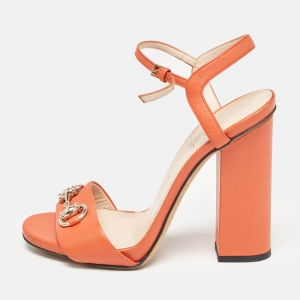 Gucci Grey Leather Horsebit Ankle Strap Sandals Size 39