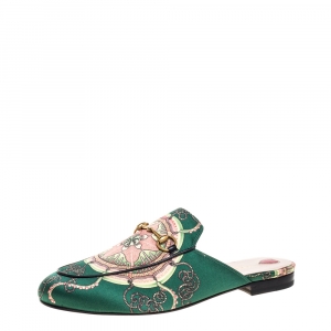 Gucci Multicolor Princetown Horsebit Canvas Accent Mules Size 37
