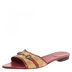 Gucci Beige/Brown Monogram Canvas Horsebit Open Toe Sandals Size 38