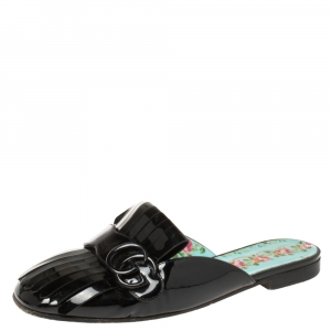 Gucci Gold Foil Leather Marmont Kiltie GG Fringe Mules Size 36.5