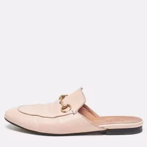 Gucci Pink Leather Princetown Mules Size 38