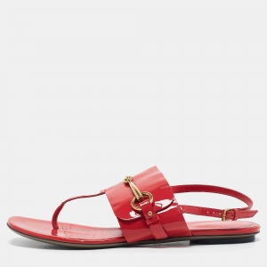 Gucci Black Patent Leather Ankle Strap Flat Sandals Size 40