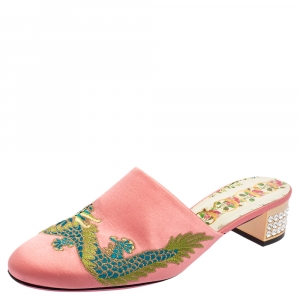 Gucci Pink Satin Crystal Embellished Bow Mules Size 37.5