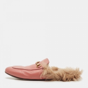 Gucci Prink Leather and Fur Princetown Mules Size 36