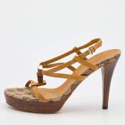 Gucci Beige Leather GG Marmont Ankle Strap Sandals Size 37.5
