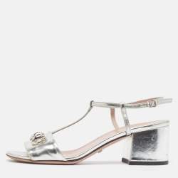 Gucci Silver Foil Leather GG Marmont Slide Sandals Size 41