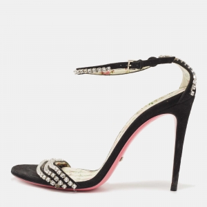 Gucci Black Suede Crystal Embellished Ankle Strap Sandals Size 39