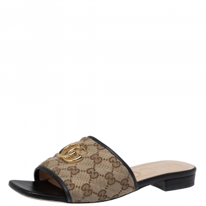 Gucci Beige GG Canvas Open Toe Slide Sandals Size 38.5