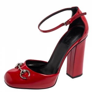 Gucci Red Patent Leather Horsebit Ankle Strap Sandals Size 37