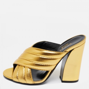Gucci Gold Quilted Leather Webby Mules Size 36.5