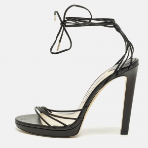 Jimmy Choo Black/Grey Snakeskin Leather Platform Ankle Strap Sandals Size 36