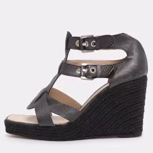 Loewe Grey Leather Strappy Wedge Sandals Size 39