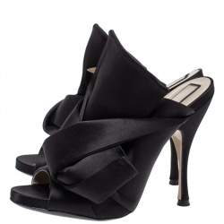 Nº21 Black Satin Raso Knot Peep Toe Slide Mules Size 41