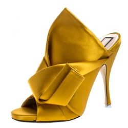 Nº21 Mustard Satin Knot Flat Mules Size 39