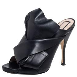 N21 Black Satin Raso Knot Peep Toe Mules Size 37