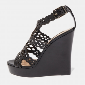 Roberto Cavalli Black Patent Leather Peep Toe Ankle Strap Sandals Size 37