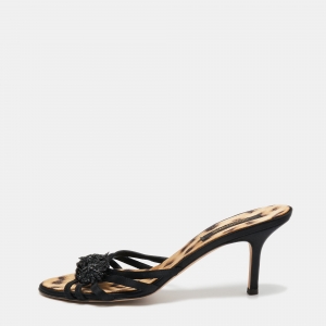 Roberto Cavalli Blue Satin Royal Spiral Rhinestone Ankle Strap Sandals Size 38