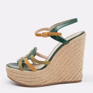 Saint Laurent Brown Leather Tribute Espadrille Wedge Sandals 37.5