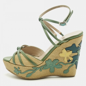 Salvatore Ferragamo Gold Canvas and Leather Ankle Strap Sandals Size 38