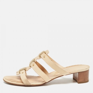Salvatore Ferragamo Beige Leather Elina X5 Sandals Size 38