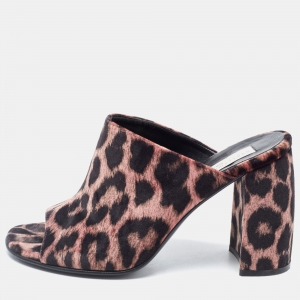 Stella McCartney Rose Pink Leopard Printed Velvet Sabot Mules Size 39.5