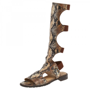 Stuart Weitzman Multicolor Iridescent Snake Print Suede Jean Wedge Platform Slingback Sandals Size 37.5