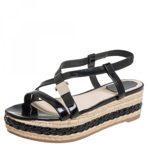 Dior Black Patent and Leather Bow Cut Out Platform Sandals Size 38