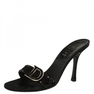 Christian Dior Black Leather High Heel Slides Size 38.5
