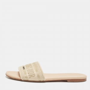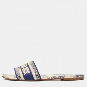 Dior Navy Blue/White Embroidered Canvas Dway Flat Slides Size 38.5