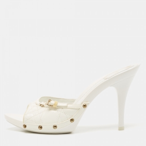 Dior White Quilted Patent Leather Buckle Detail Open Toe Slide Sandals Size 41