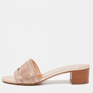 Dior Metallic Pink Canvas Dway Slide Sandals Size 39