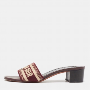 Dior Burgundy/Cream Embroidered Canvas Dway Slide Sandals Size 38