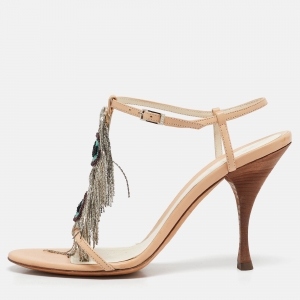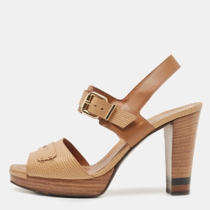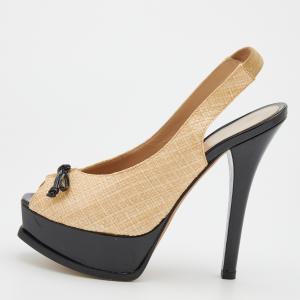 Fendi Beige Patent Leather and Stretch Band Strappy Wedge Sandals Size 36.5