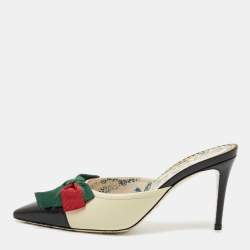 Gucci Beige Canvas Patent Leather Slide Sandals Size 39