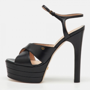 Gucci Black Rubber Logo Embossed Platform Slide Sandals Size 36