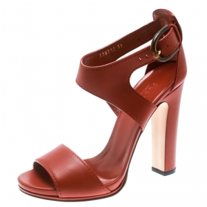 Gucci Rust Orange Leather Lifford Ankle Strap Sandals Size 39