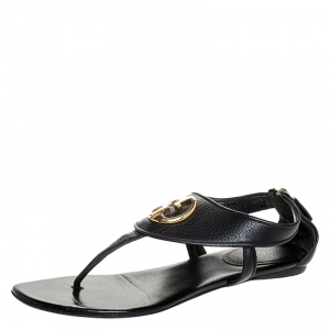 Gucci Black GG Canvas Horsebit Open Toe Sandals Size 40