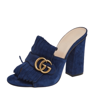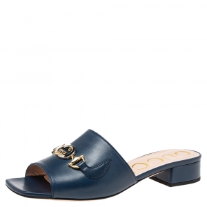 Gucci Navy Blue Leather Princetown Mule Sandals Size 38.5