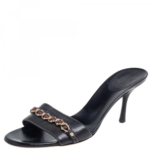 Gucci Black GG Canvas and Leather Trim Slide Sandals Size 37