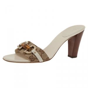 Gucci Beige/Brown GG Canvas And Leather Horsebit Slide Sandals Size 39.5