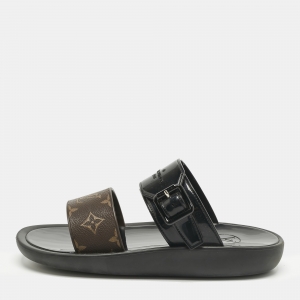 Louis Vuitton Monogram Coated Canvas Lock It Flat Slides Size 37
