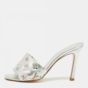 Louis Vuitton Silver Monogram Embellish Leather Revival Slide Sandals Size 39