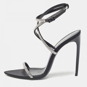 Saint Laurent Black Leather Tribute Ankle Strap Sandals Size 38.5