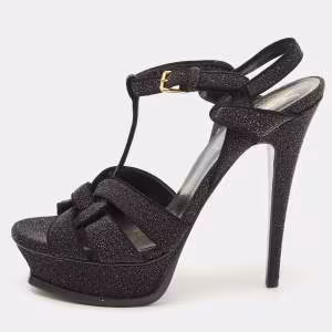Saint Laurent Black Velvet Tribute Platform Sandals Size 40